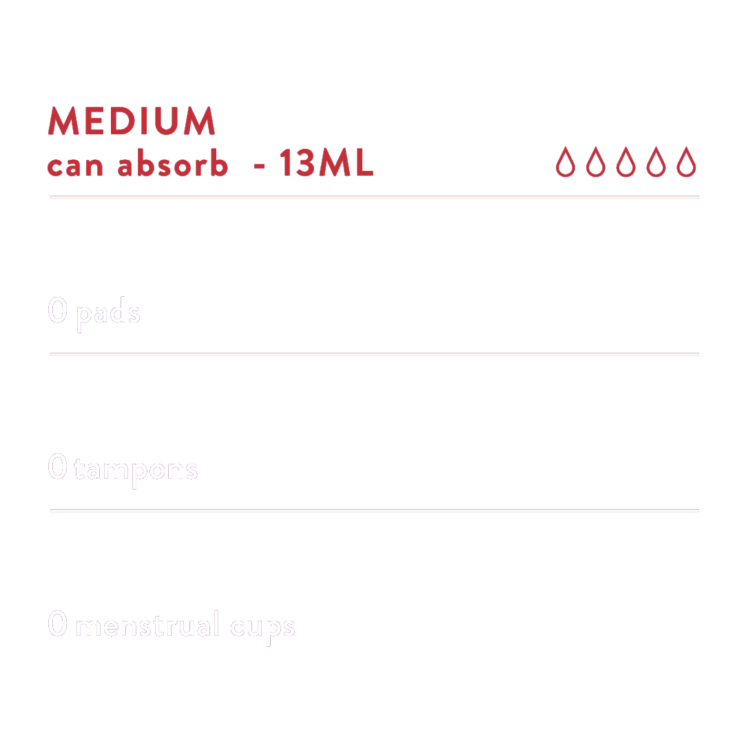 - Medium - absorbs up to 2 pads (12ml) of fluid