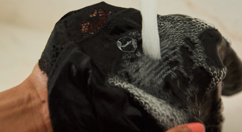 Once thoroughly rinsed, machine wash or hand wash your Nushu underwear with detergent.
